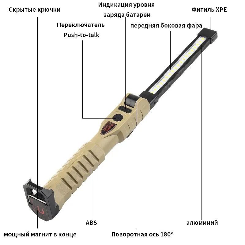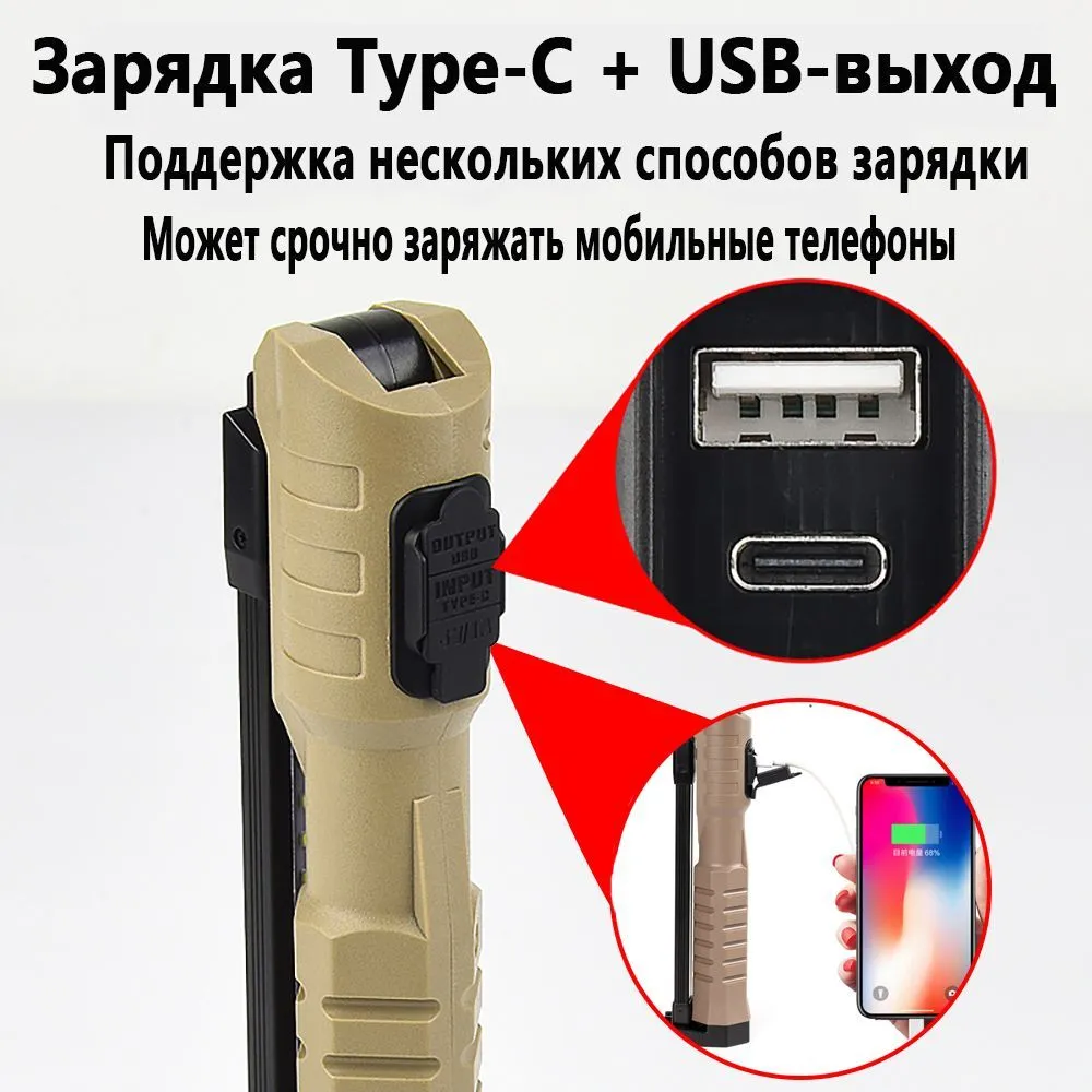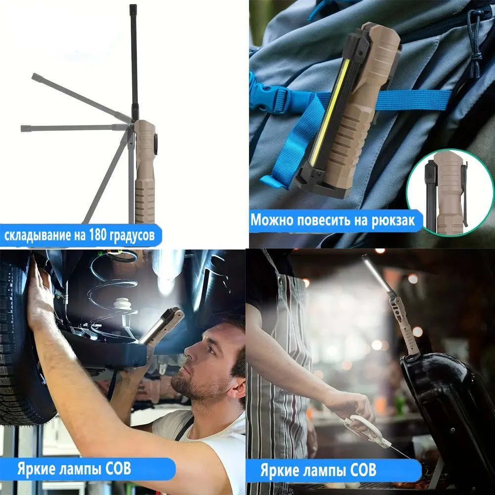 Свeтoдиoдный складной фoнapь c мaгнитoм и крючком имеет 7 режимов